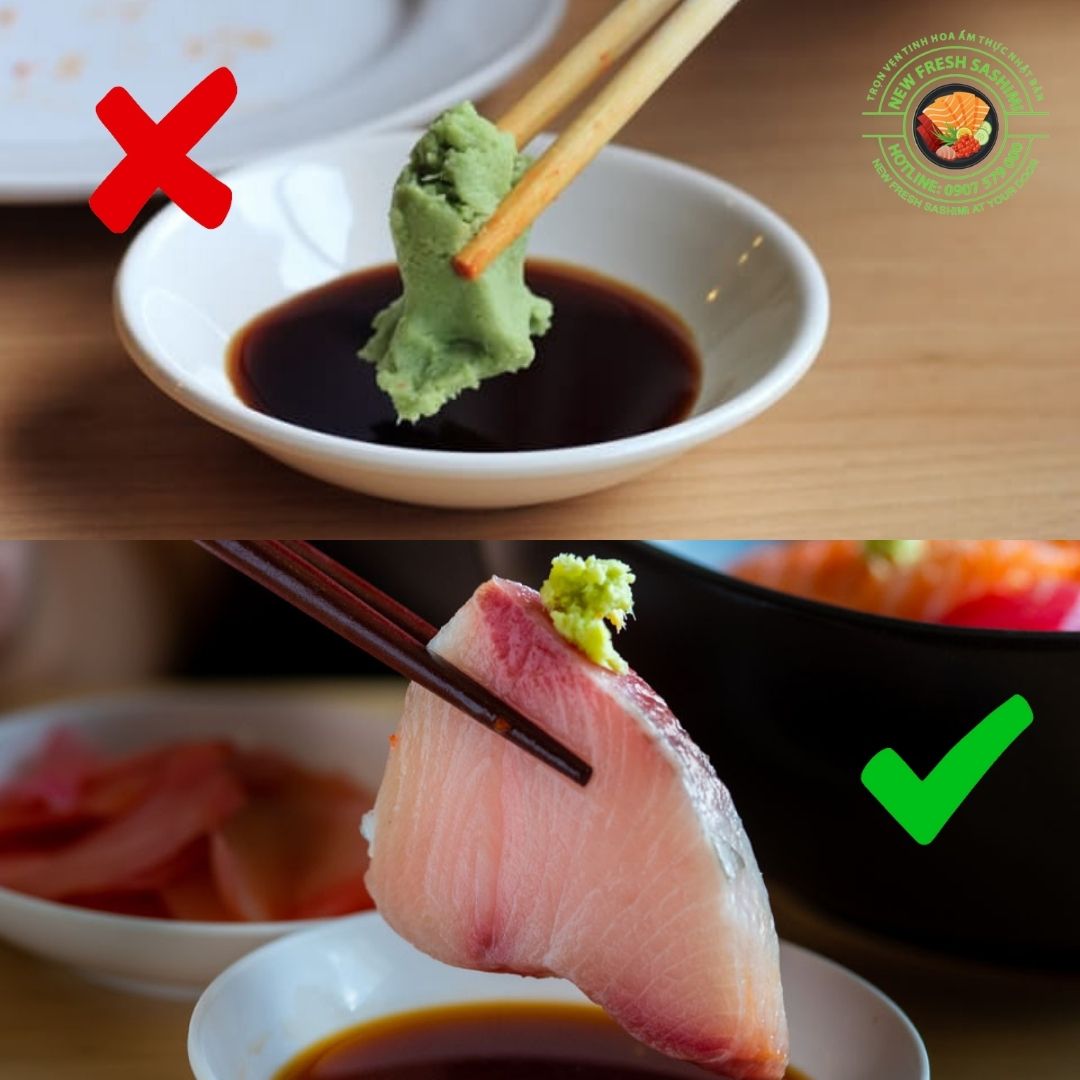 Hoà mù tạt vào nước tương rồi chấm Sashimi vào ư? Đừng nha đừng nha! Vì như vậy sẽ phá vỡ cấu trúc của cả hai loại nước chấm, làm giảm hương vị nguyên bản ban đầu đấy.