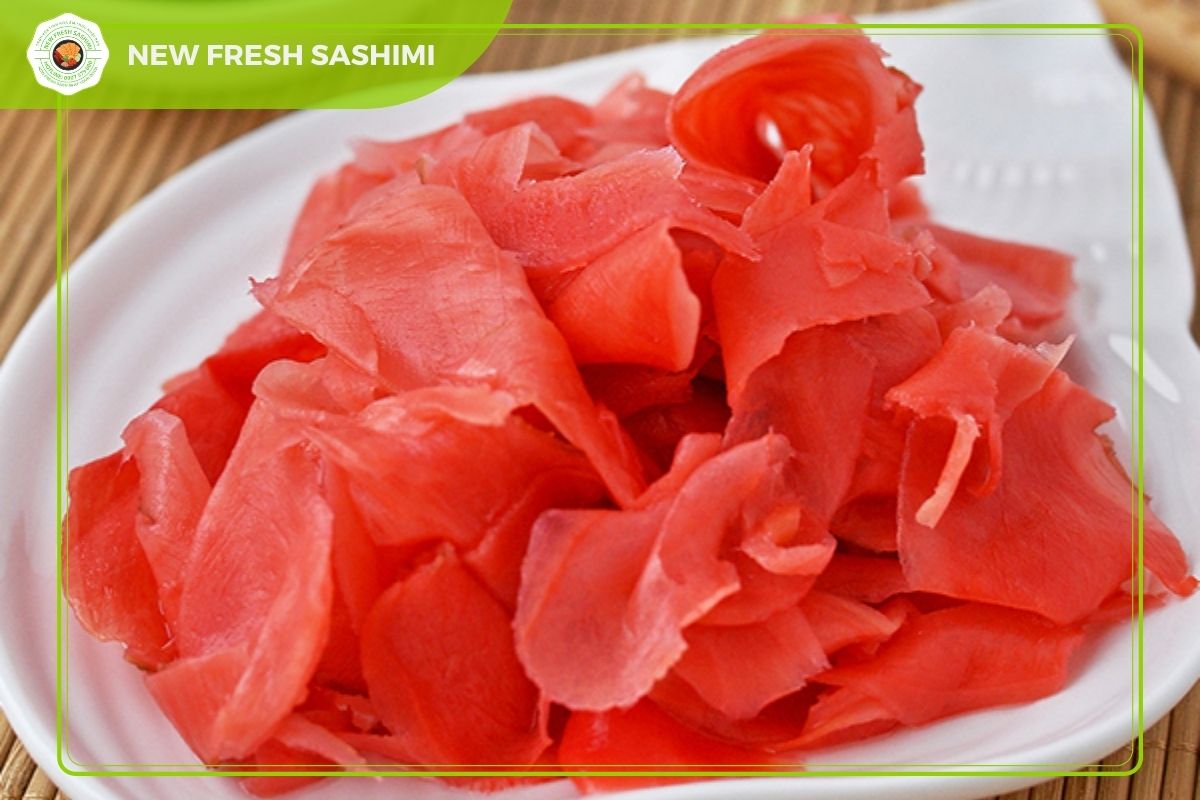 Đây là nguyên liệu không thể thiếu trong bữa tiệc sashimi của bạn, gừng hồng là nguyên liệu giúp kích thích vị giác, khi ăn với hải sản tươi sống giúp khử bớt mùi tanh của hải sản vì vậy bạn nào không ăn được đồ sống vì sợ tanh thì yên tâm nhé.