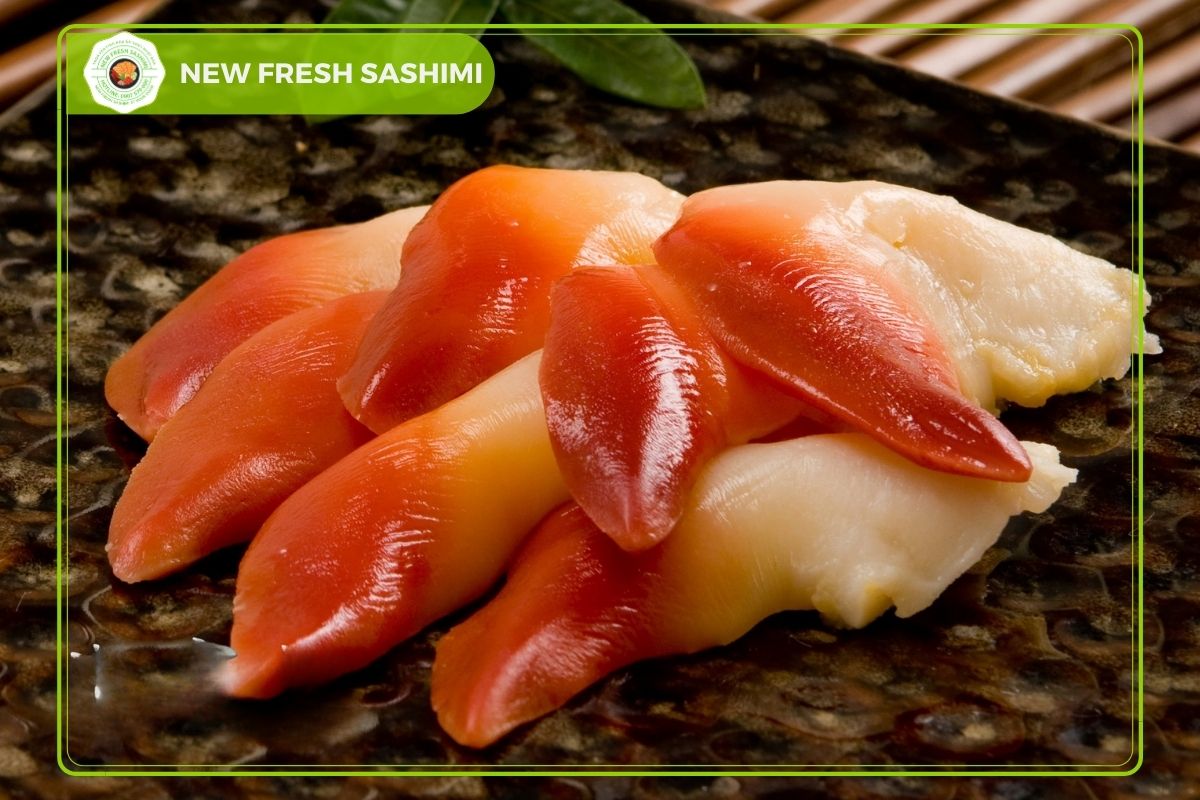 Sò đỏ Hokkigai là món ăn trứ danh trong nền ẩm thực Sashimi Nhật với màu đỏ lộng lẫy vô cùng bắt mắt trên bàn tiệc. Trái với màu đỏ nóng rực thì sò đỏ mang đến sự thanh mát từ vị ngọt thanh của cồi sò đỏ.